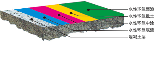2.水性環氧底漆:用滲透性及附著力較強的水性環氧底漆,按主、固比例混合后攪拌均勻,滾涂或者刮涂地面一道,增強環氧地坪對素地的附著力;