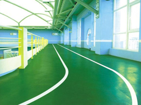 4.水性環氧面漆: 將水性環氧面漆按主、固比例混合后攪拌均勻,用滾筒均勻滾涂二道或使用鏝刀將其均勻涂布一道,使地面防塵防水、易清潔,完工后整體地面光亮潔凈、顏色均一、無氣泡、無空鼓。